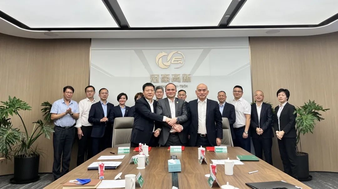 On October 20, China Haisum and Guangdong Guanhao High-Tech Co., Ltd. (hereinafter referred to as Guanhao High-Tech) held a signing ceremony for the "300,000-ton White Cardboard Machine Relocation EPC Project" in Guangzhou. Zhao Guo'ang, Secretary of the CPC Committee and Chairman of China Haisum, and Xie Xianlong, Secretary of the CPC Committee and Chairman of Guanhao High-Tech attended the ceremony and delivered speeches. Lin Lin, member of the CPC Committee, chief financial officer and secretary of the board of directors of China Haisum, Liu Lixin, member of the CPC Committee and deputy general manager of Guanhao High-Tech, Tang Liming, assistant general manager and other leaders attended the signing ceremony.