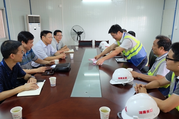 7月4日,氣溫陡升,酷暑難耐。長沙公司黨委副書記、副總經(jīng)理、長順公司董事長潘祥明等一行代表工程公司領導層、公司工會到達長沙地鐵3號線、瀏陽河人行景觀橋等抗洪救災前線項目部進行慰問。受暴雨影響,長沙多處封路,車輛禁行,潘總等頂著烈日徒步數(shù)里走進各工程現(xiàn)場,檢查防汛措施落實情況。