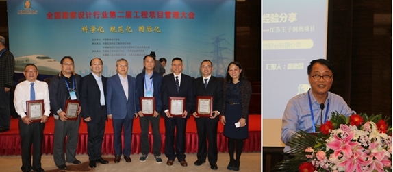 會議由中國勘察設(shè)計協(xié)會建設(shè)項目管理和工程總承包分會榮世立會長主持;中國勘察設(shè)計協(xié)會理事長施設(shè)致開幕詞、住建部工程質(zhì)量安全監(jiān)管司李如生司長作了專題發(fā)言。大會還對榮獲第八屆全國勘察設(shè)計行業(yè)優(yōu)秀工程項目管理和優(yōu)秀工程總承包項目的團隊代表進行了頒獎。海誠股份共有5個項目獲獎。其中:海誠股份承接的江蘇王子制紙有限公司新建年產(chǎn)80萬噸版紙項目年產(chǎn)71.4萬噸漂白化學闊葉木漿生產(chǎn)線及其配套工程和長沙子公司承接的南通經(jīng)濟技術(shù)開發(fā)區(qū)中水回用示范工程項目被授予工程總承包銀鑰匙獎;海誠股份承接的光明乳業(yè)股份有限公司日產(chǎn)2000噸乳制品中央自動控制技術(shù)生產(chǎn)線技術(shù)改造項目、利拉伐天津空港畜牧設(shè)備生產(chǎn)項目和長沙子公司承接的江門星輝造紙有限公司年產(chǎn)30萬噸高檔涂布白版紙工程被授予銅鑰匙獎。王子項目項目經(jīng)理龐建國、光明項目項目經(jīng)理馮毅、天津利拉伐項目項目經(jīng)理呂偉良、黃自力,南通中水回用工程和江門星輝項目項目經(jīng)理胡正陽和吳鳴分別上臺領(lǐng)獎。