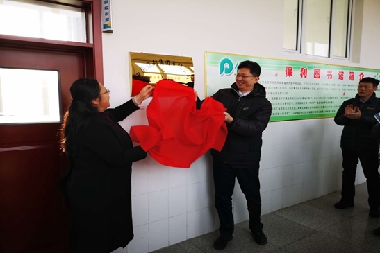 隨后,慰問(wèn)組來(lái)到王爺府鎮(zhèn)蒙古族學(xué)校,參加保利集團(tuán)·中輕集團(tuán)“保利愛(ài)心圖書館”揭牌儀式。中輕集團(tuán)總經(jīng)理助理、黨委辦公室主任肖金龍代表集團(tuán)公司為圖書館揭牌,并捐贈(zèng)價(jià)值1萬(wàn)元的閱覽桌椅和4000冊(cè)愛(ài)心圖書。