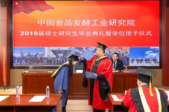 蔡木易在致辭中代表研究院向圓滿完成學(xué)業(yè)的2019屆畢業(yè)生表示祝賀,感謝全體導(dǎo)師為研究生的成長、成才所付出的辛勤工作。蔡木易指出,食品院十分重視研究生教育工作,始終堅持把進入科研一線、參與項目研發(fā)、提高動手能力作為研究生教育的重要手段,選配高水平導(dǎo)師以及有研究價值的科研項目,為培養(yǎng)研究生的綜合能力提供重要保障。他強調(diào),食品院始終堅持科技創(chuàng)新發(fā)展之路,并正在為推進實現(xiàn)2018-2022年戰(zhàn)略發(fā)展規(guī)劃和強院工程目標(biāo)而不懈努力。2019 年是中華人民共和國成立70 周年。70年來,中國共產(chǎn)黨領(lǐng)導(dǎo)中國人民持續(xù)奮斗,各方面都取得了舉世矚目的巨大成就。希望同學(xué)們不忘初心,堅守夢想,與時代同步伐,與祖國共命運,在不懈奮斗中創(chuàng)造未來,努力書寫屬于國家、人民和自己的出彩人生。