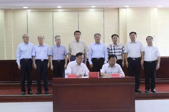 徐念沙一行與喀喇沁旗委、旗政府領(lǐng)導(dǎo)班子召開座談交流會??咂煳瘯浉呦HA傳達了習(xí)近平總書記視察調(diào)研喀喇沁旗的重要指示精神,介紹了喀喇沁旗脫貧攻堅及鄉(xiāng)村振興情況,并向保利集團和中輕集團在喀喇沁旗脫貧攻堅中給予的支持幫助表示衷心感謝。