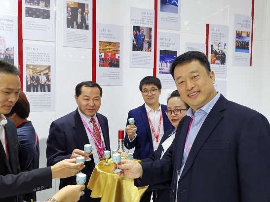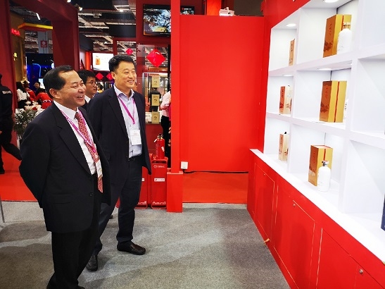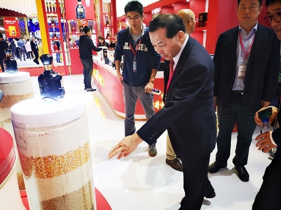 郭建全一行參觀展會(huì),與食品院有技術(shù)合作的五糧液、酒鬼酒、國臺(tái)酒、釣魚臺(tái)酒、秦含章酒、梁大師等企業(yè)負(fù)責(zé)人深入溝通服務(wù)合作。