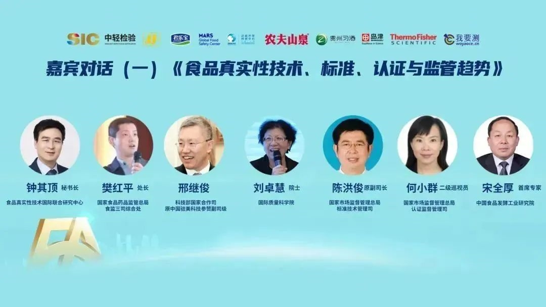 在嘉賓對話環(huán)節(jié),國家質(zhì)量監(jiān)督檢驗(yàn)檢疫總局原總工程師、中國防偽行業(yè)協(xié)會理事長劉卓慧,國家市場監(jiān)督管理總局標(biāo)準(zhǔn)技術(shù)管理司原副司長(正司級)陳洪俊,國家市場監(jiān)管總局特殊食品安全監(jiān)管司副司長樊紅平,科技部國際合作司、原中國駐美科技參贊邢繼俊,國家市場監(jiān)督管理總局認(rèn)證監(jiān)督管理司二級巡視員何小群、中國食品發(fā)酵研究院首席專家宋全厚教授圍繞“食品真實(shí)性技術(shù)、標(biāo)準(zhǔn)、認(rèn)證與監(jiān)管趨勢”主題,分別從國家質(zhì)量基礎(chǔ)設(shè)施建設(shè)、食品質(zhì)量標(biāo)準(zhǔn)體系建設(shè)、高品質(zhì)認(rèn)證、保健食品監(jiān)管趨勢、國際科技合作、食品真實(shí)性檢測和認(rèn)證等方面進(jìn)行討論,并達(dá)成共建食品真實(shí)性產(chǎn)業(yè)生態(tài)科學(xué)共識。