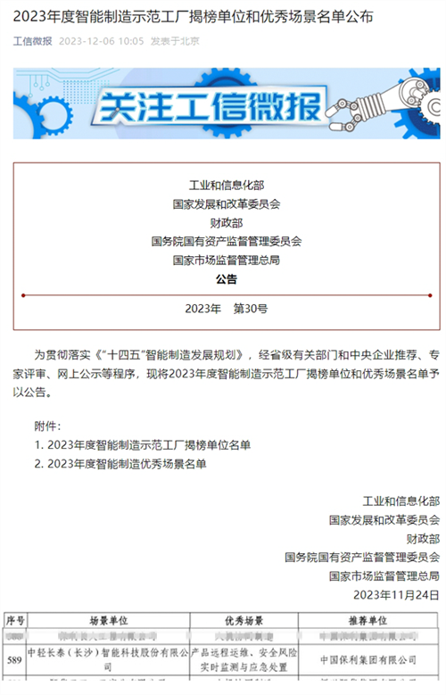 近日,工業(yè)和信息化部公布“2023年度智能制造示范工廠揭榜單位和優(yōu)秀場景名單”。保利中輕所屬中輕長泰研發(fā)的“產(chǎn)品遠程運維”和“安全風(fēng)險實時監(jiān)測與應(yīng)急處置”成功入選智能制造優(yōu)秀場景名單,凸顯中輕長泰在智能制造領(lǐng)域的顯著成績。