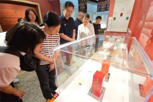 參觀中,大家認(rèn)真聆聽講解,仔細(xì)觀摩展品。一枚枚精美別致的印章,將新材料與篆刻文化完美融合,玻璃微珠、先進(jìn)陶瓷、復(fù)合材料、特種水泥、碲化鎘發(fā)電玻璃等新材料印章讓人應(yīng)接不暇,生動(dòng)展現(xiàn)了北京老城永定門到鐘鼓樓15個(gè)核心遺產(chǎn)景觀、建筑布局和歷史文化價(jià)值。在感受大眾篆刻藝術(shù)無窮魅力的同時(shí),仿佛置身于北京中軸線氣勢(shì)恢宏、秩序井然的城市建筑群中,深刻感受北京中軸線作為城市文化脊梁的重要意義。