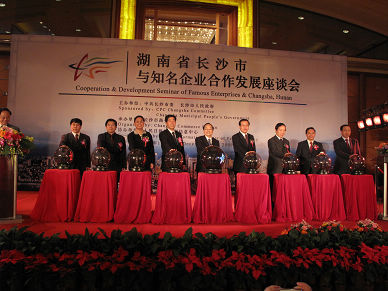 全國人大常委會原副委員長蔣正華在會上發(fā)表了講話。他認為長沙在克服金融危機影響、實現(xiàn)又好又快發(fā)展上取得了令人稱道的成績,希望有實力的企業(yè)多到長沙看看,加強與長沙的交流合作,實現(xiàn)互利雙贏。中共湖南省委常委、長沙市委書記陳潤兒在會上介紹了長沙的發(fā)展成就和投資優(yōu)勢,表達了加強長沙與知名企業(yè)合作,實現(xiàn)互利共贏的良好愿望。會議由長沙市委副書記、市長張劍飛主持。