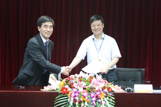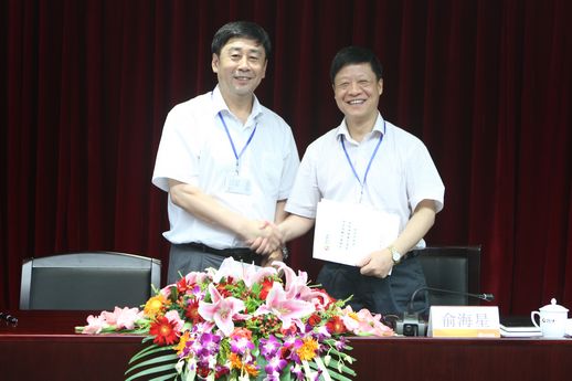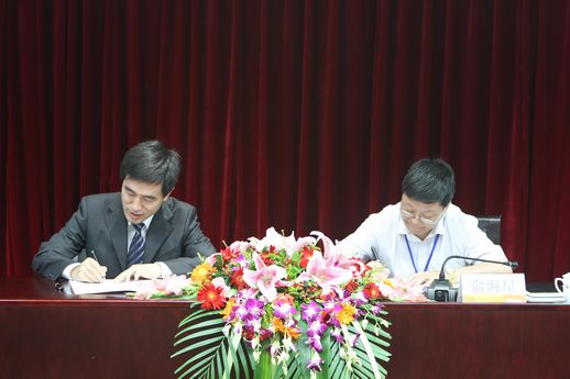集團(tuán)公司總經(jīng)理俞海星與食品發(fā)酵院院長(zhǎng)蔡木易簽訂任務(wù)合同書(shū)